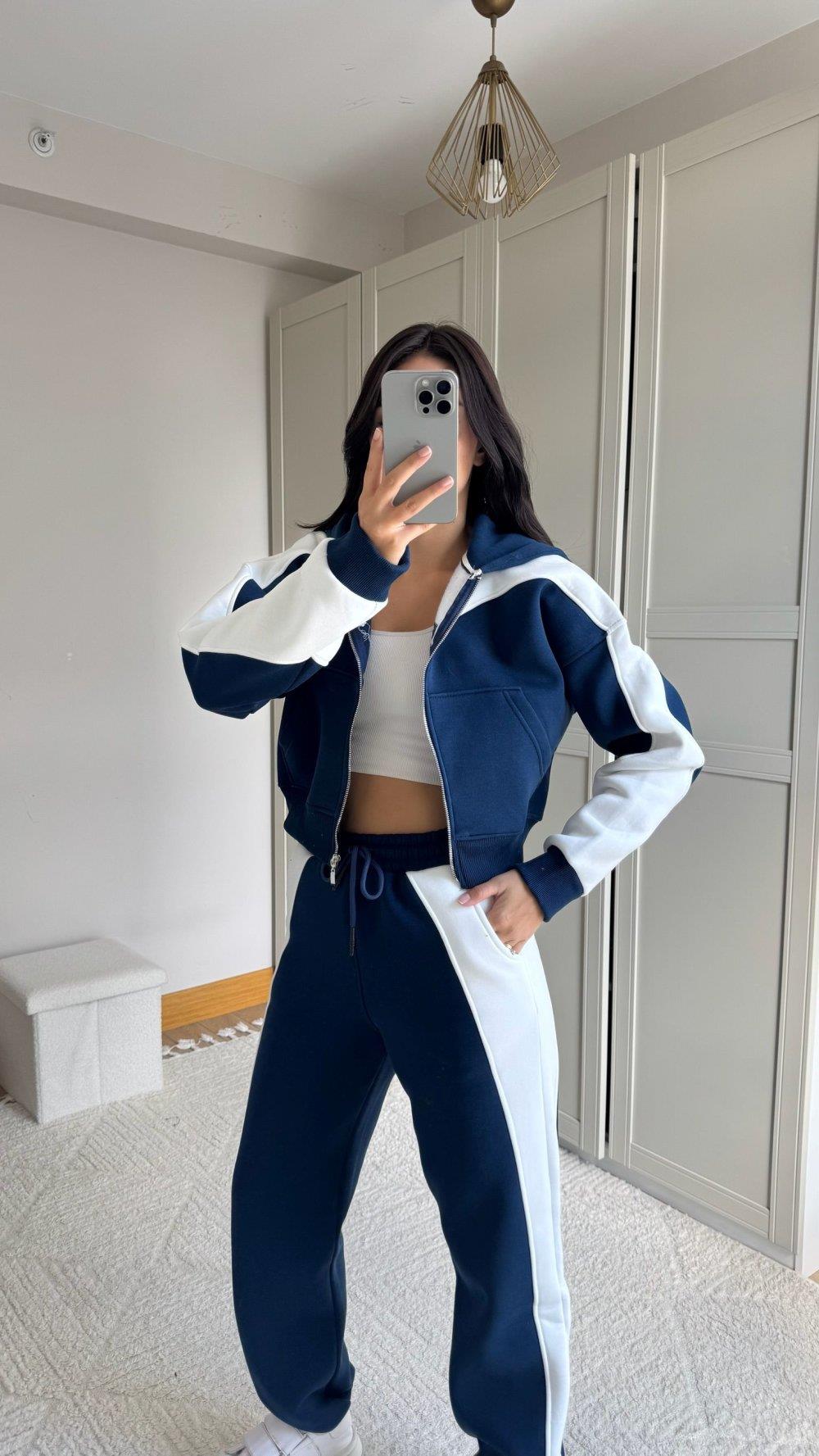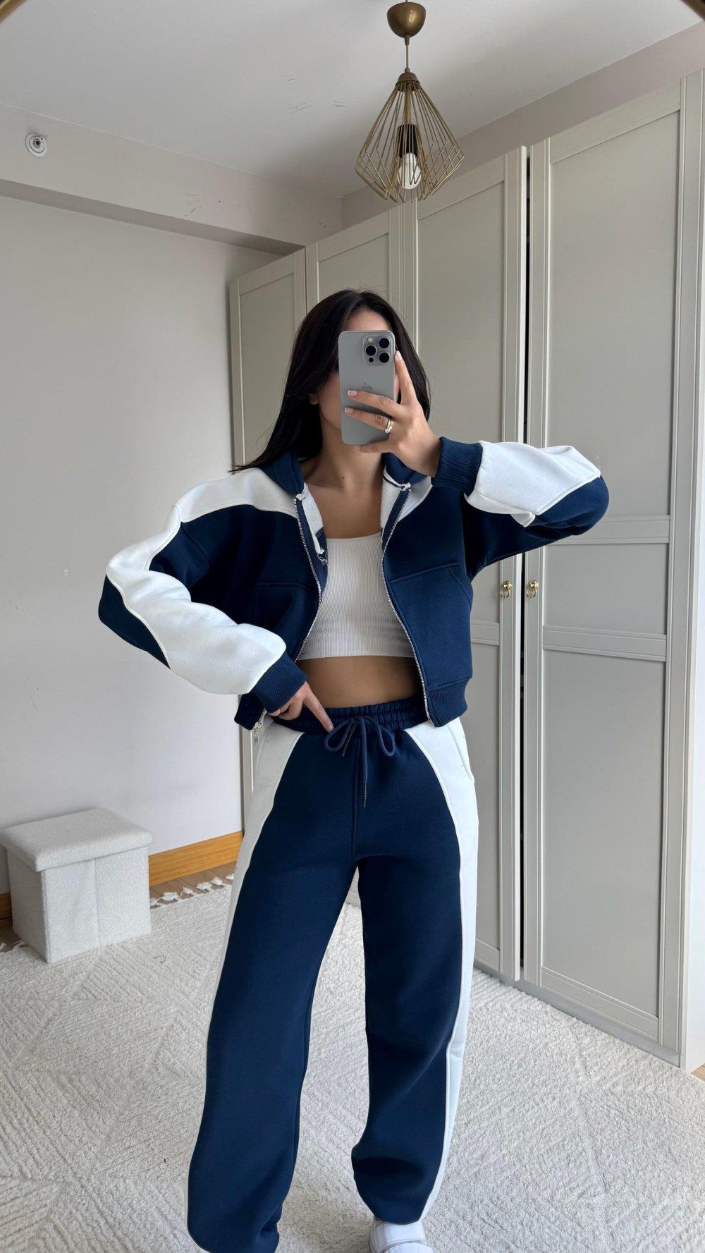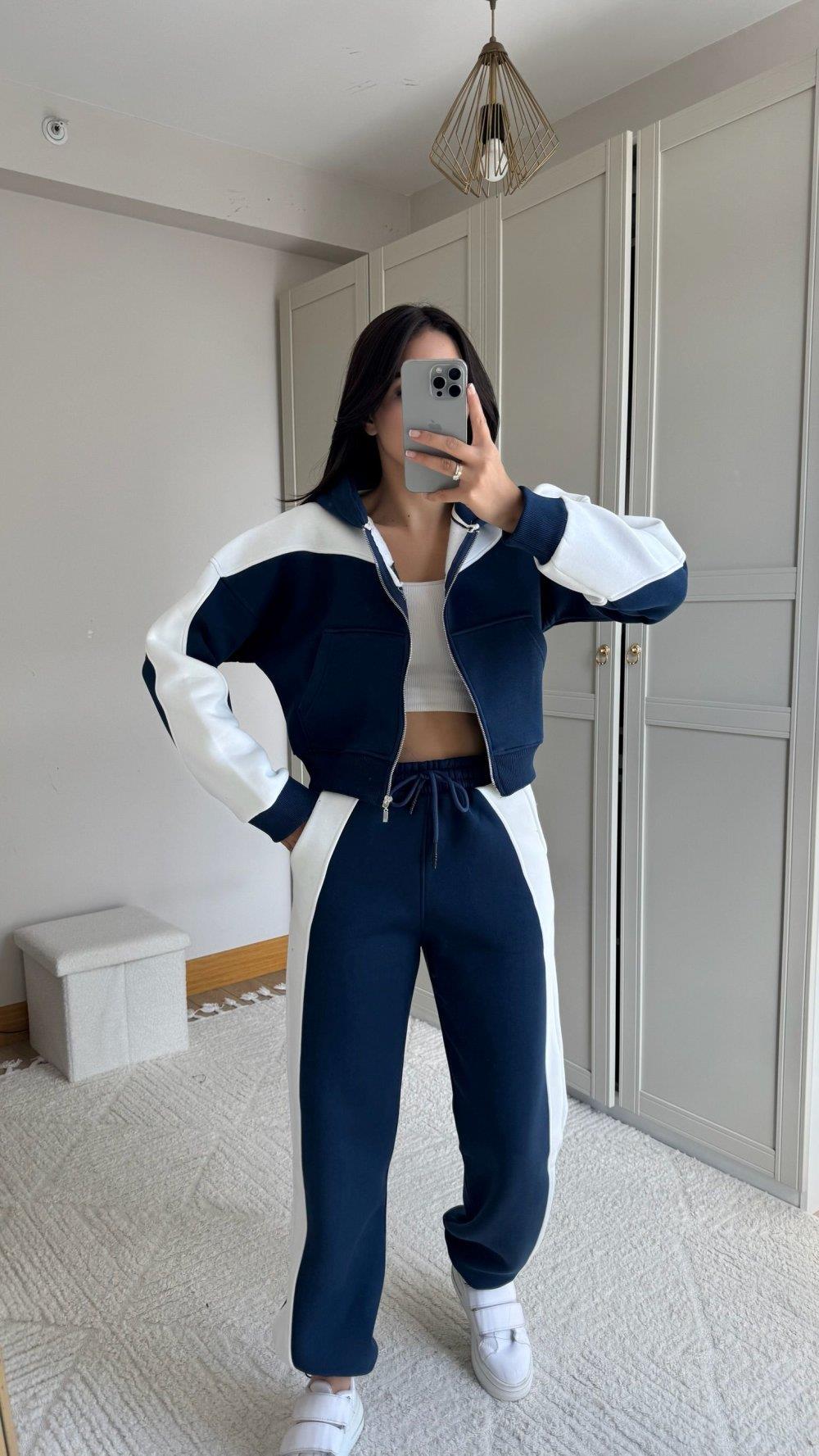 Allie Şerit Detay Bel Lastikli Takım 2625 LACİVERT