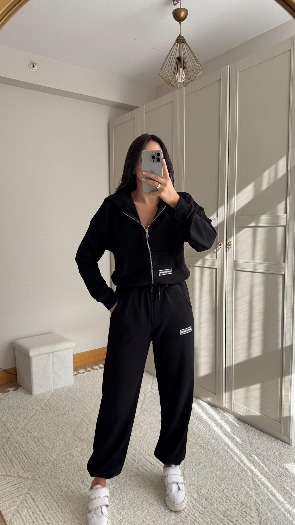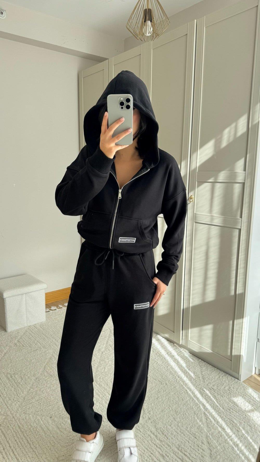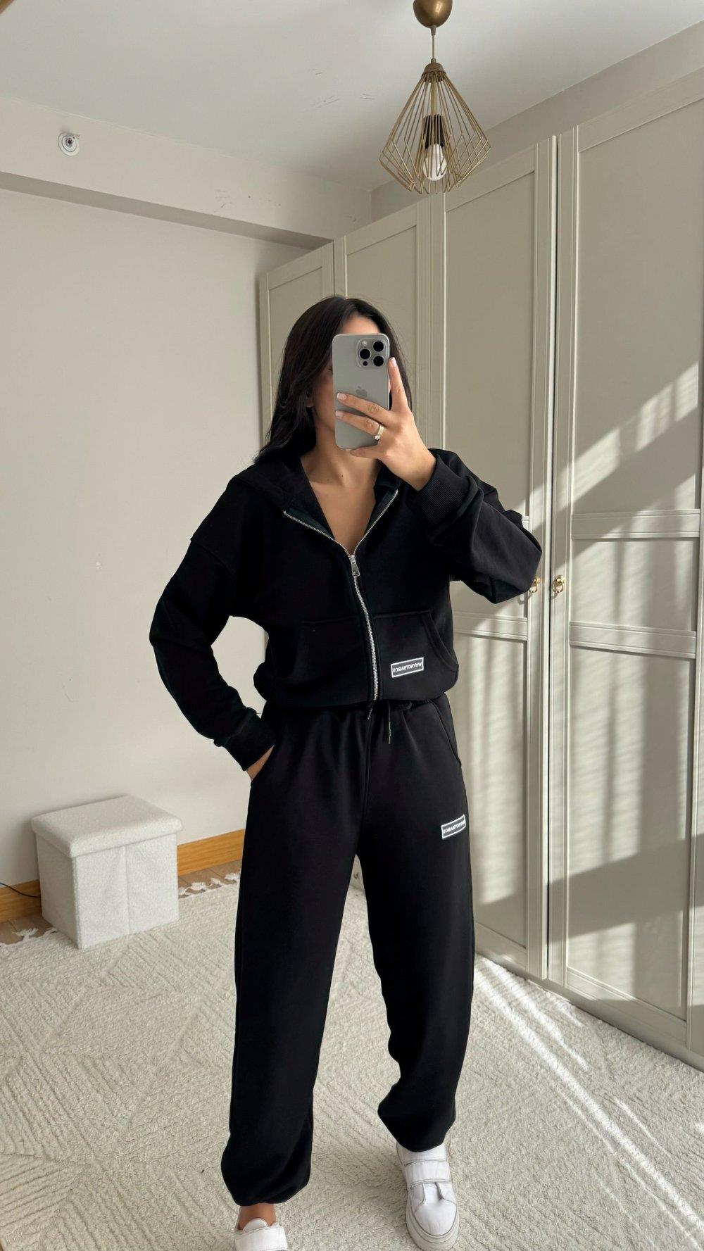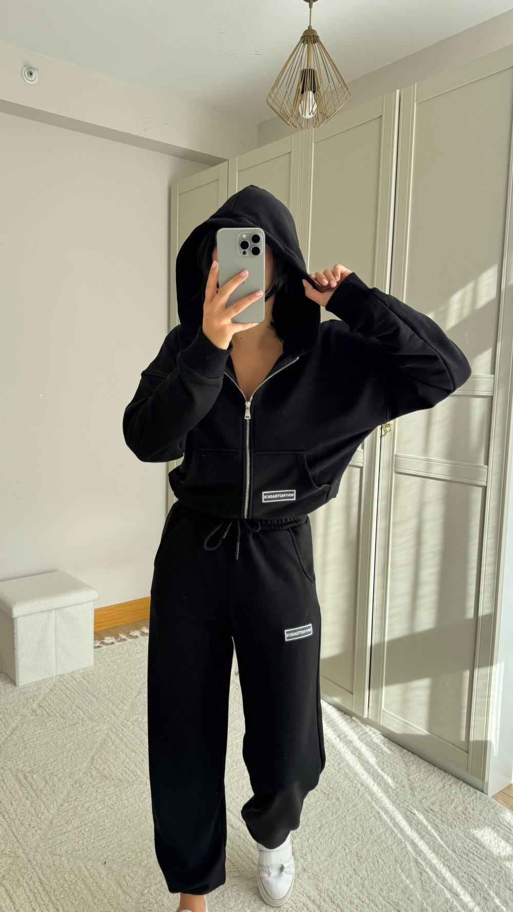 Cayla Yazı Baskılı Kapüşonlu Takım 2628 SİYAH