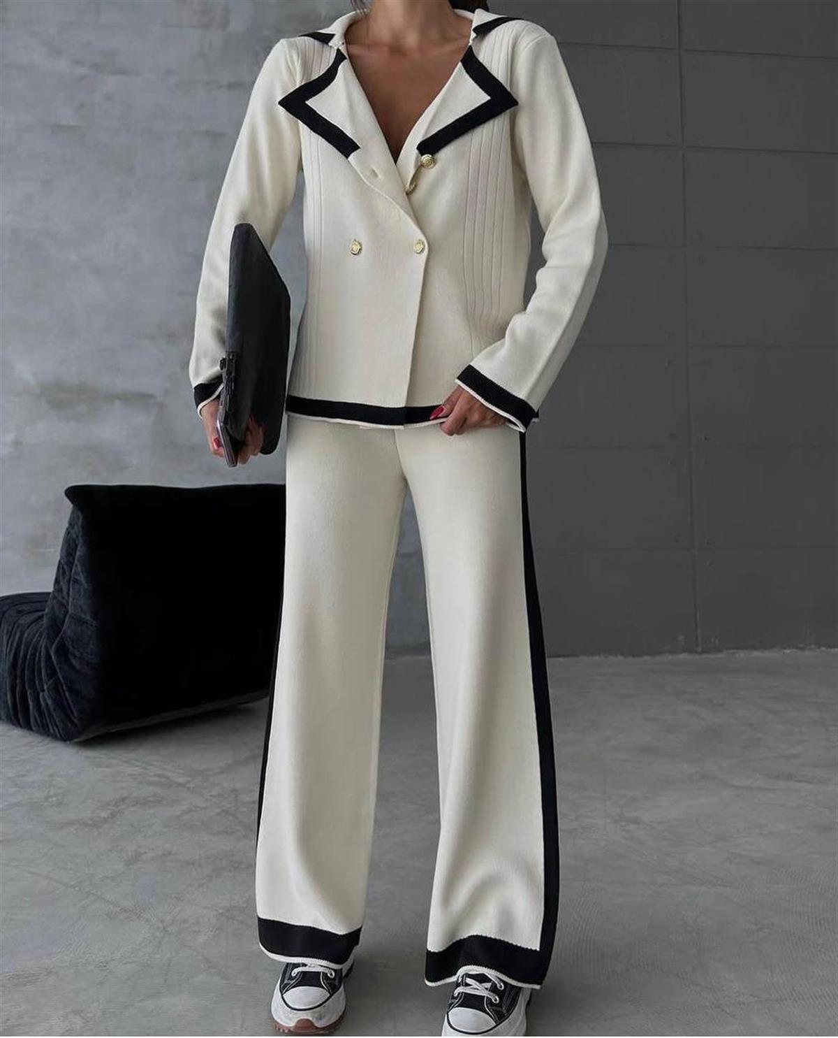 Dakota Kruvaze Düğmeli Triko Takım 9901 TAŞ RENGİ