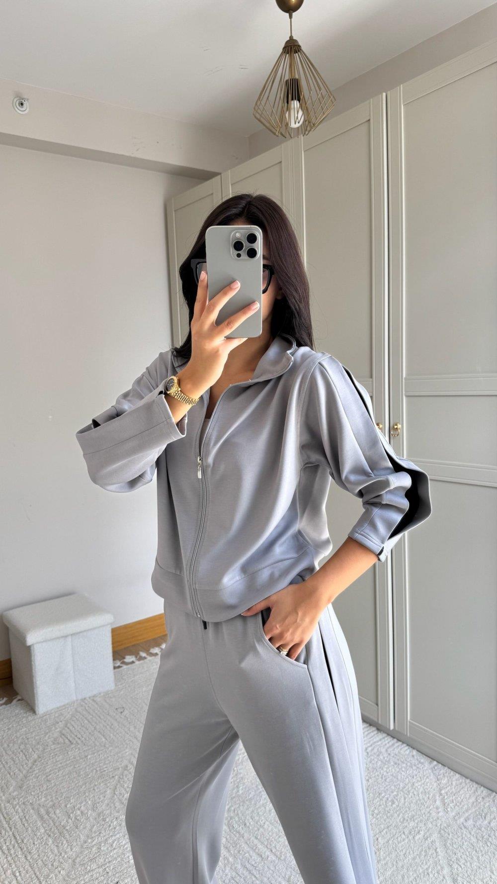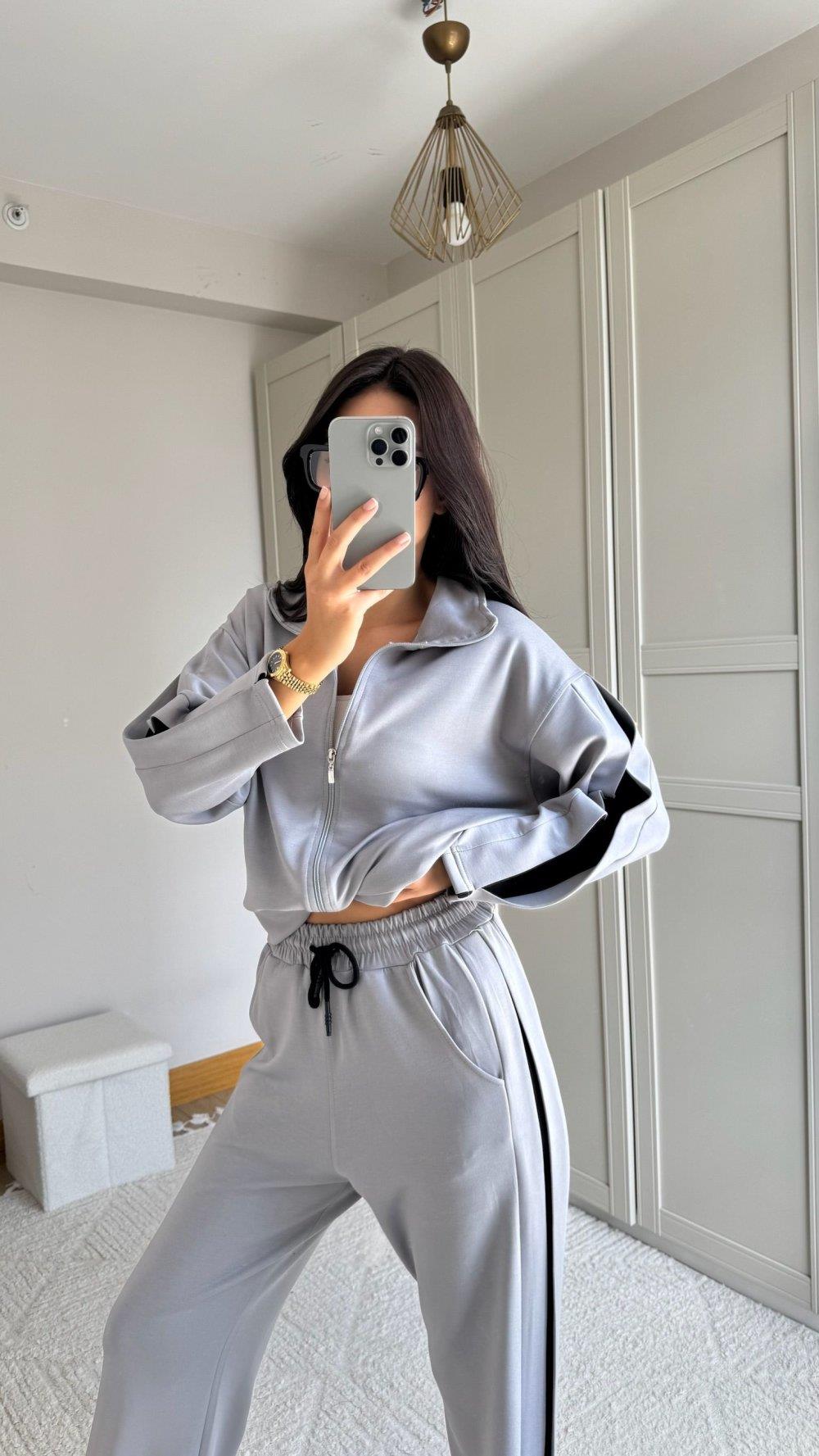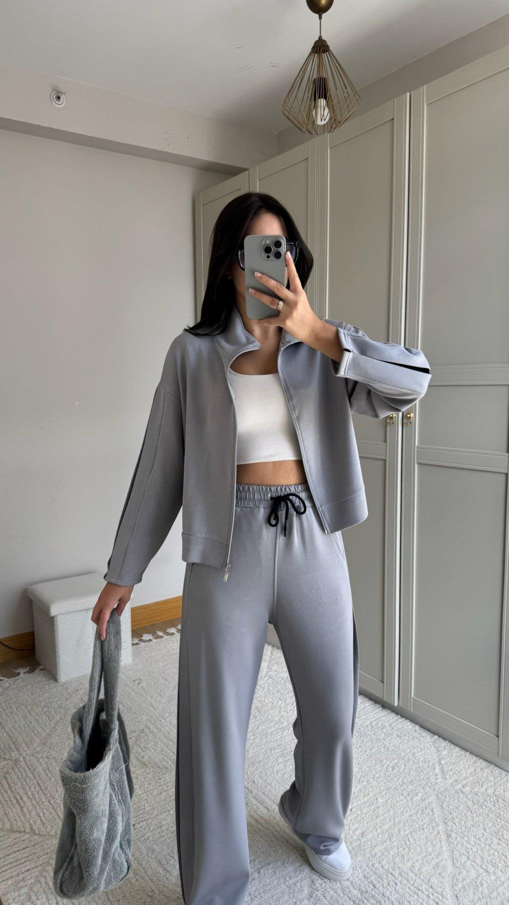 Elvis Likralı Paça Şeritli Takım 2613 GRİ