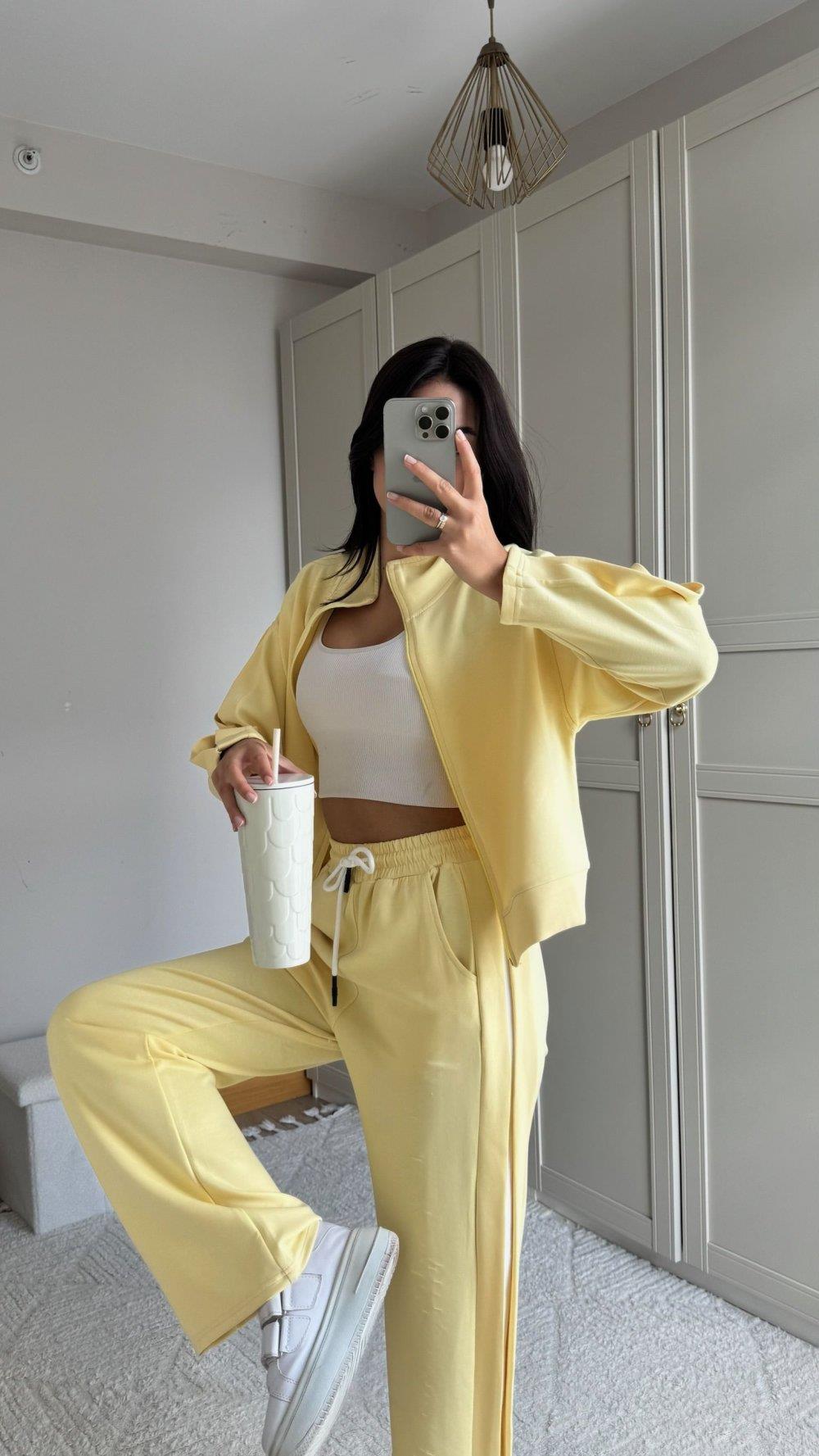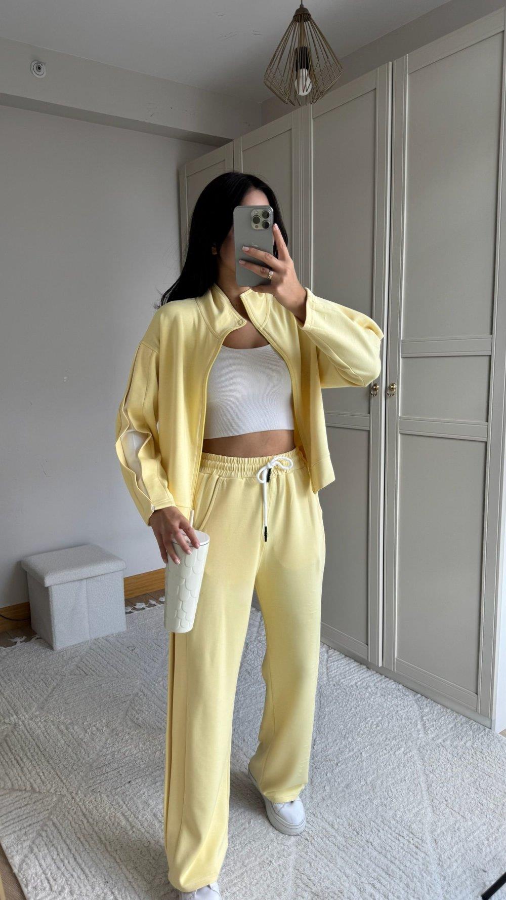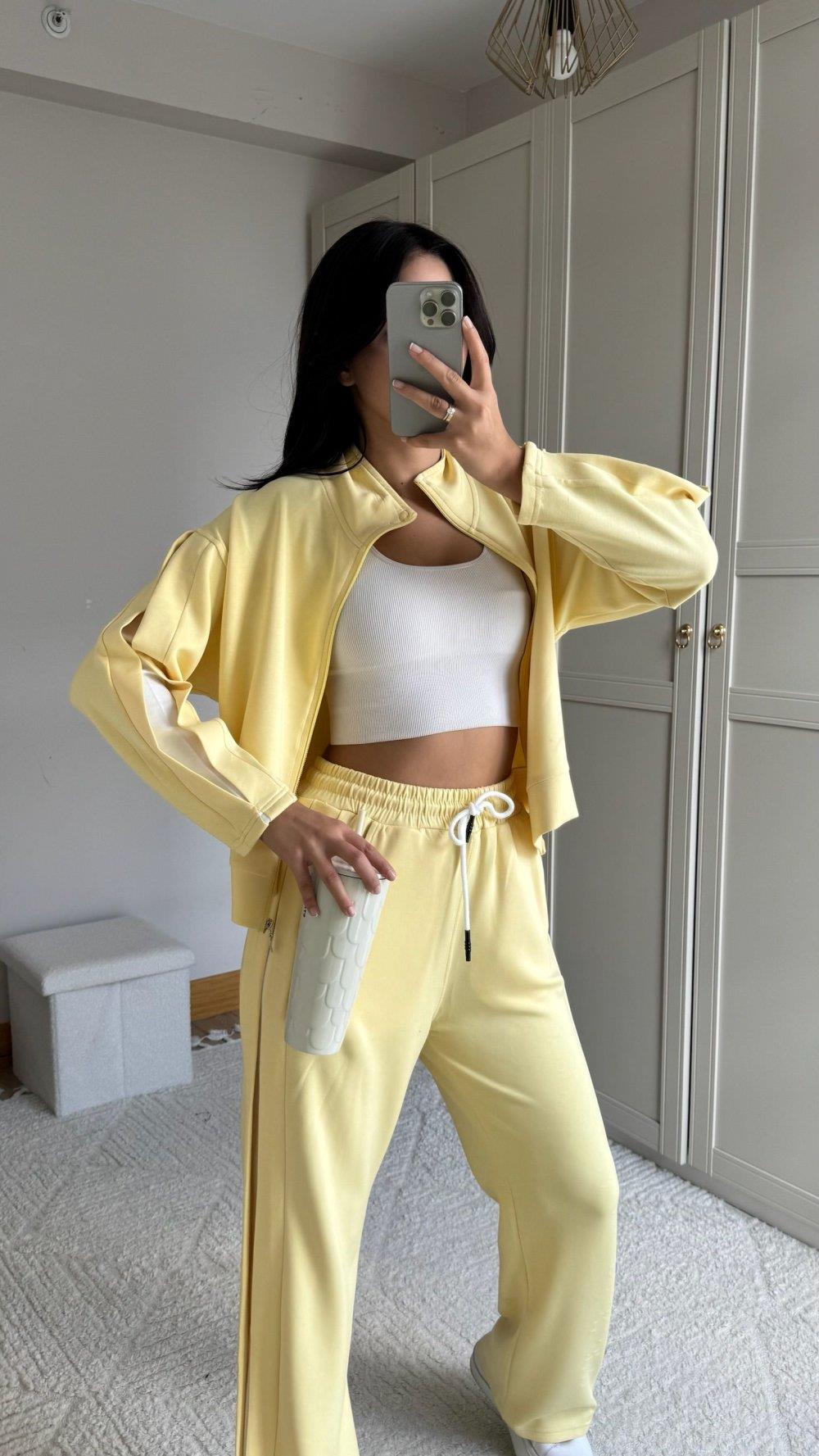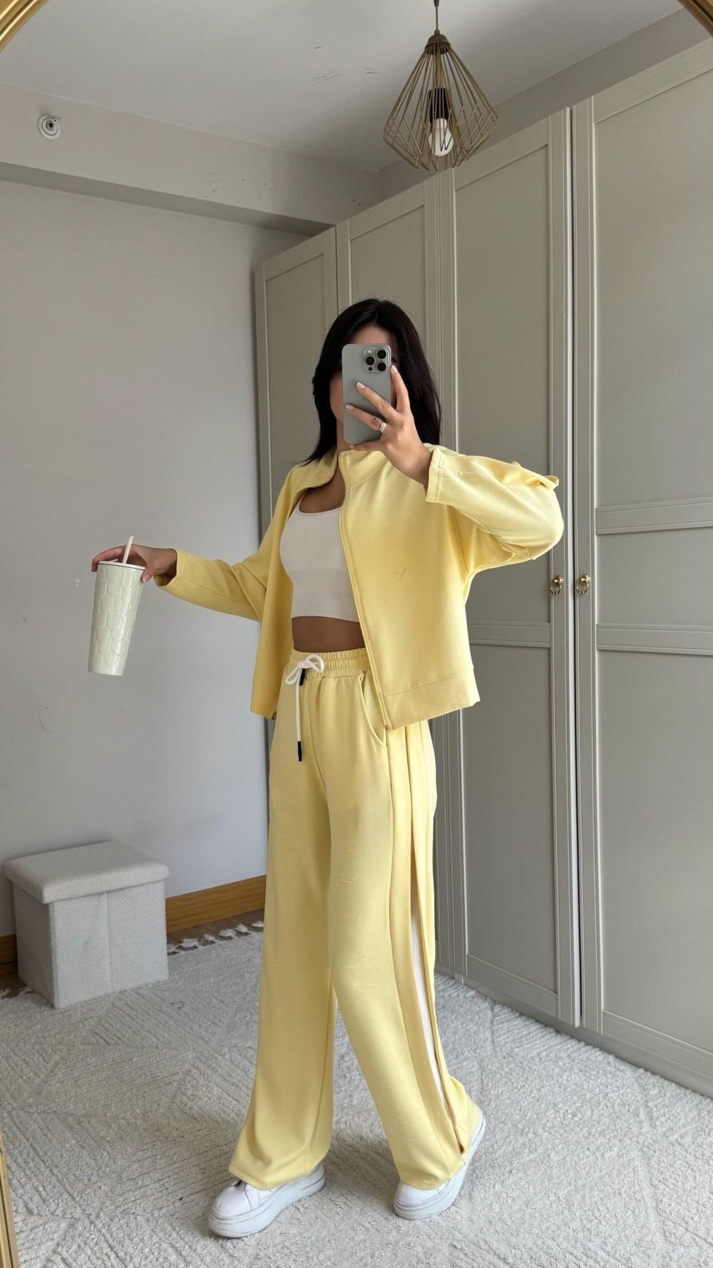 Elvis Likralı Paça Şeritli Takım 2613 SARI
