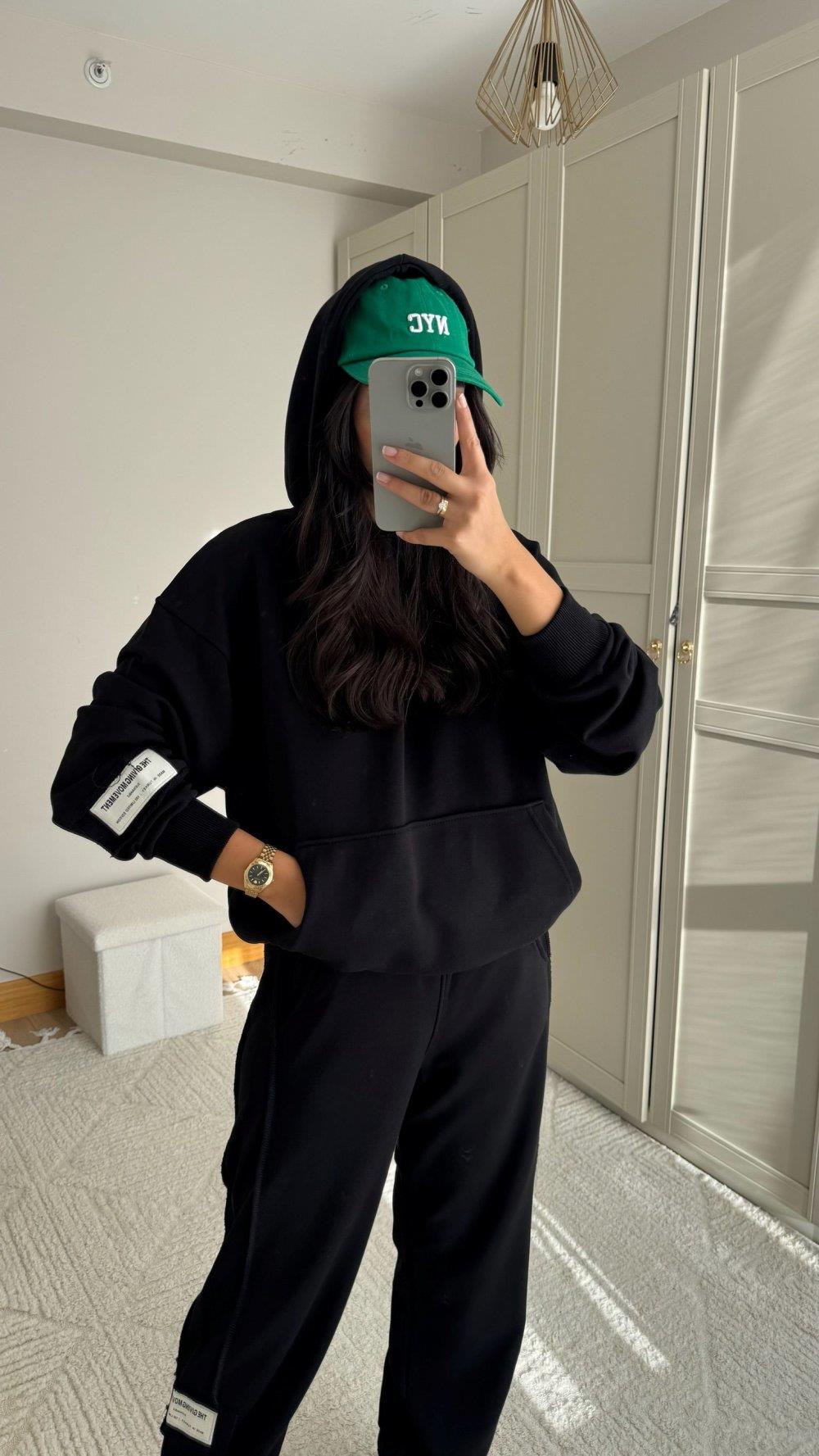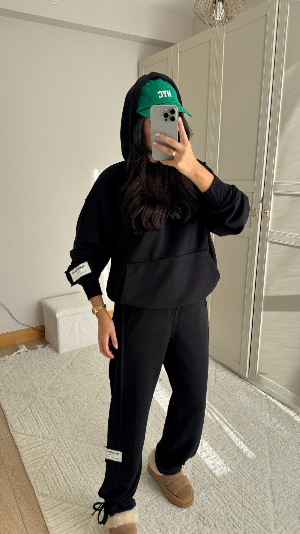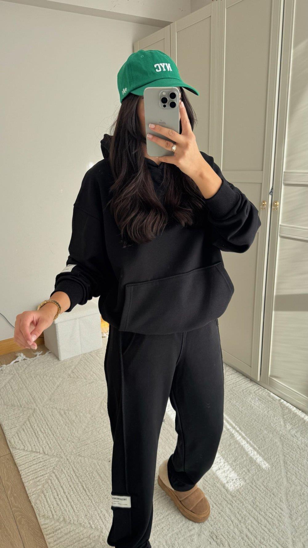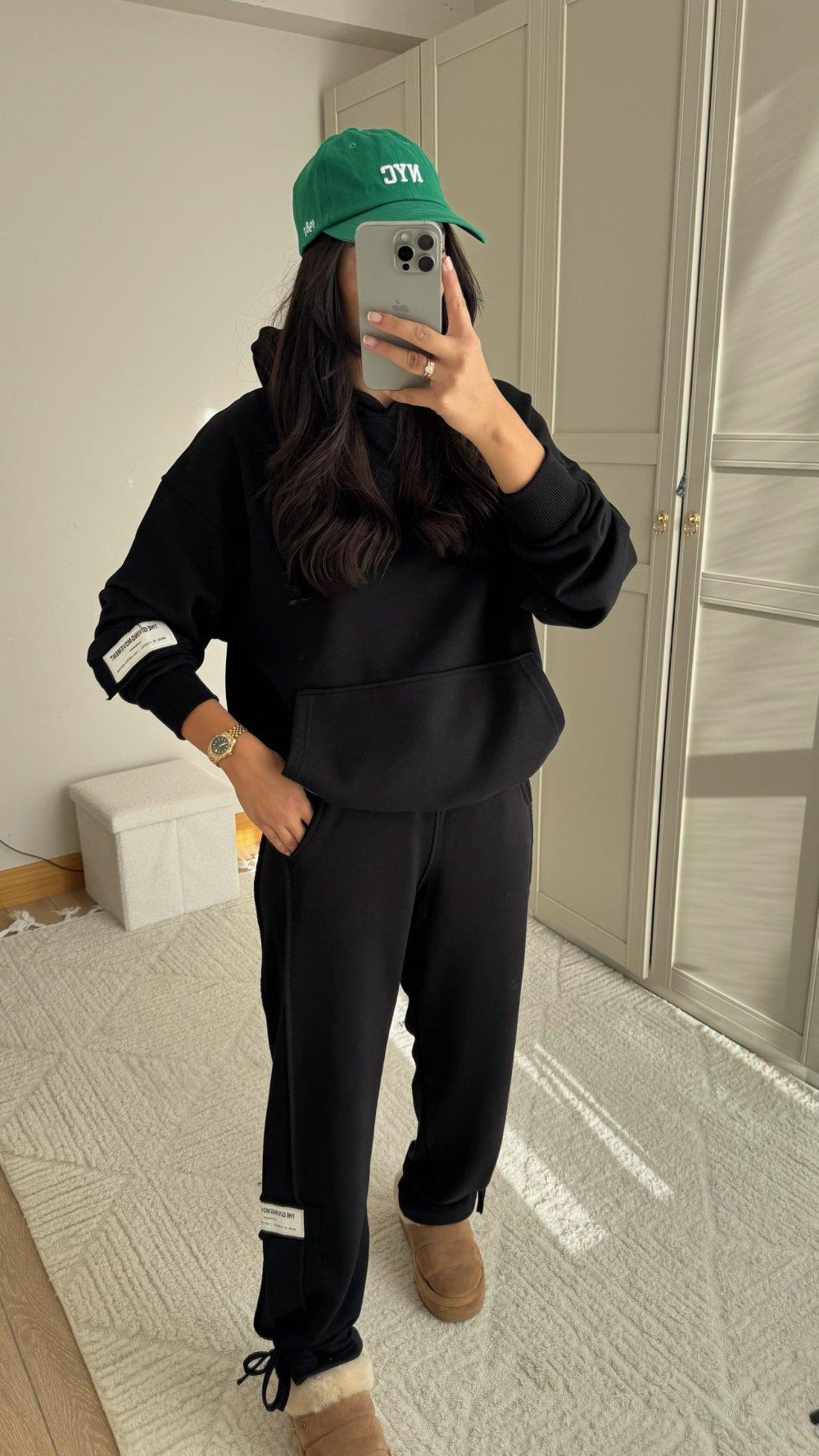 Hope Kapüşonlu Paça Bağcıklı İkili Takım 2618 SİYAH