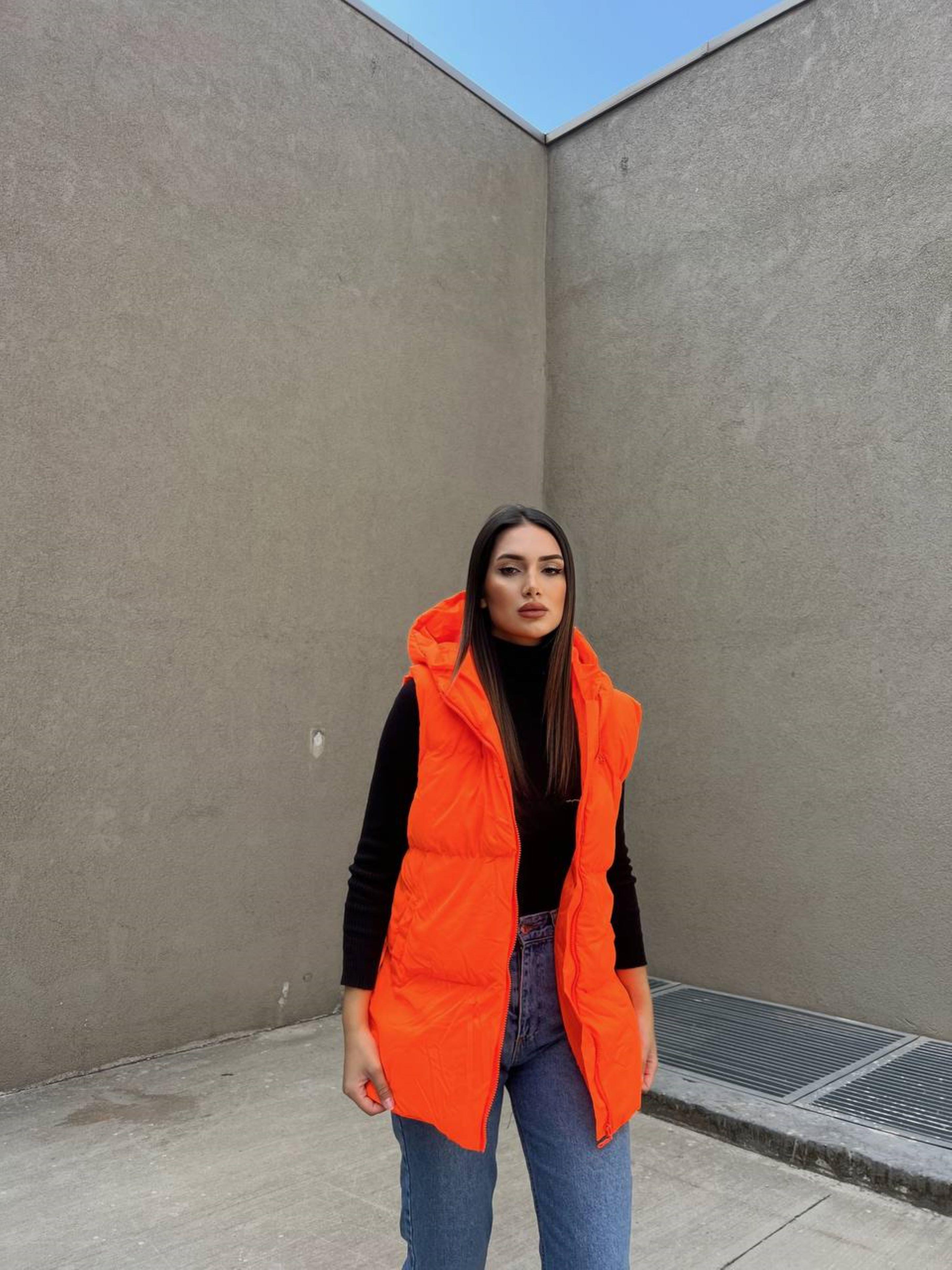 Oversize Fermuar Detay Kapitone Şişme Yelek 2023 NEON TURUNCU