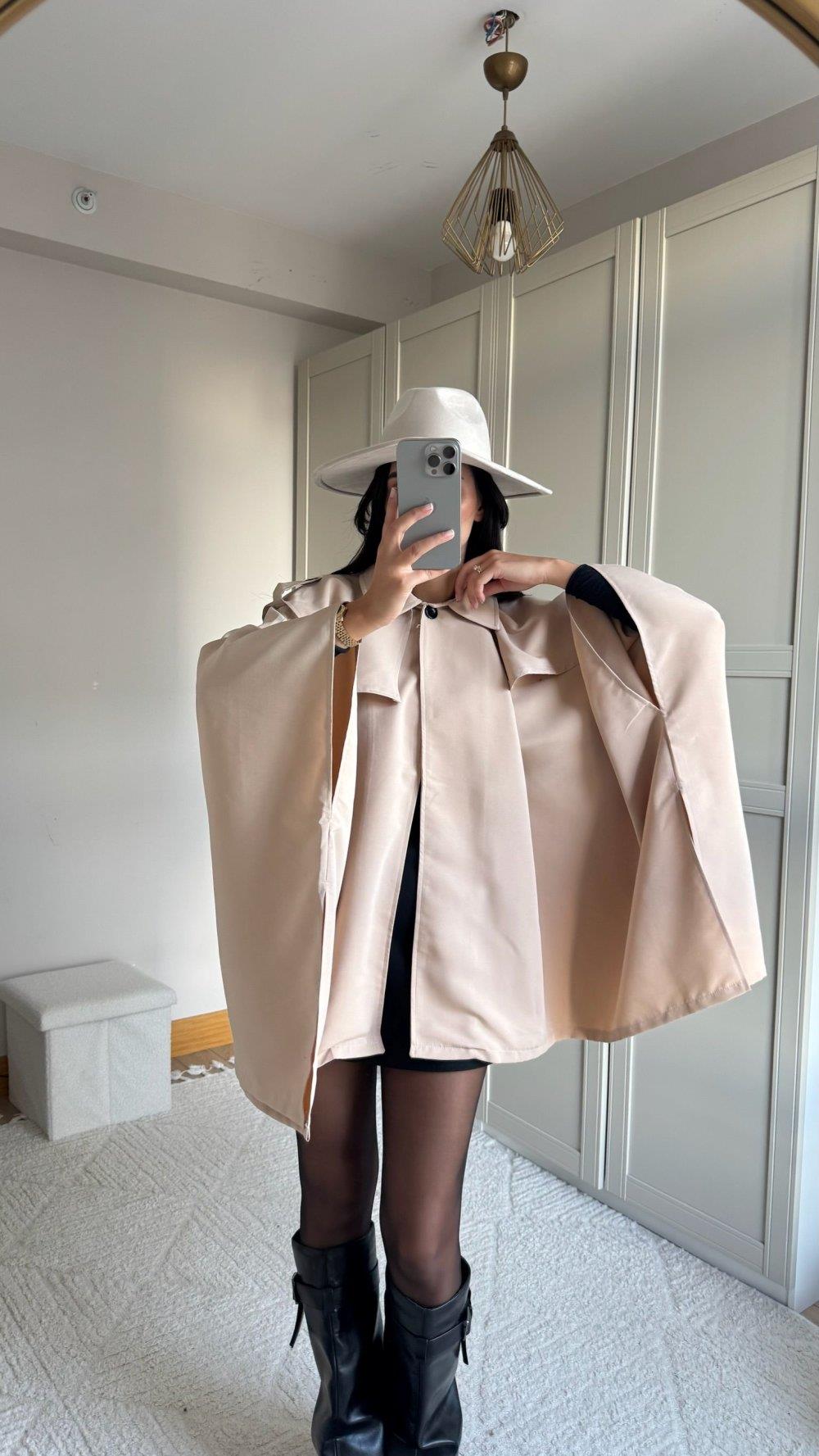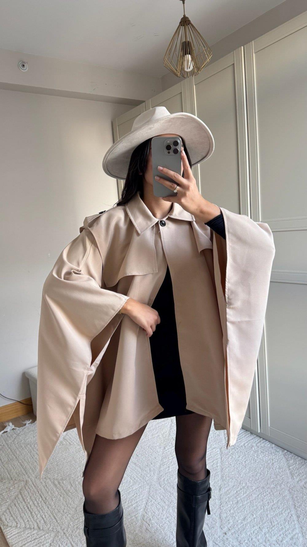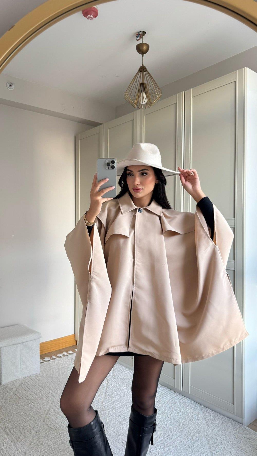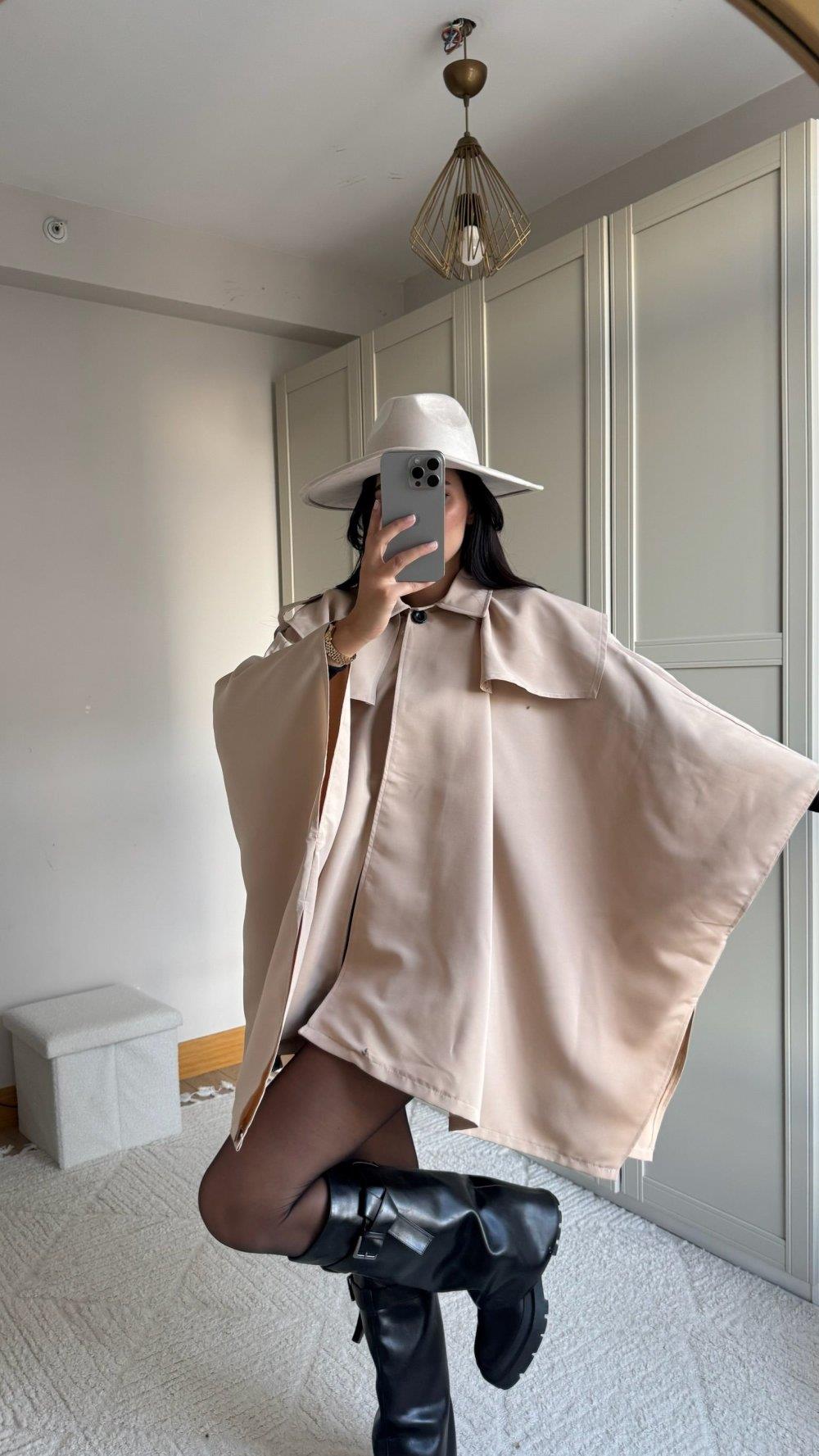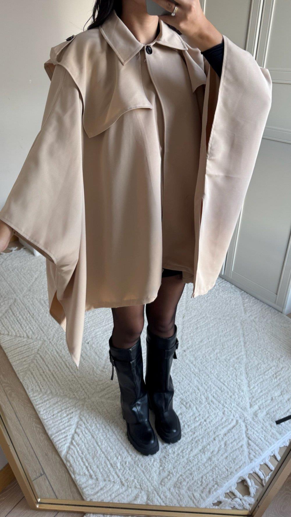 Veronica Düğmeli Panço Trençkot 2634 BEJ