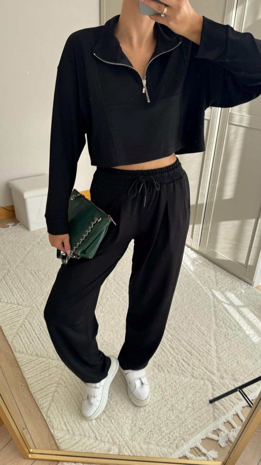 Zeta Fermuar Detay Rahat Kesim Takım 2617 SİYAH